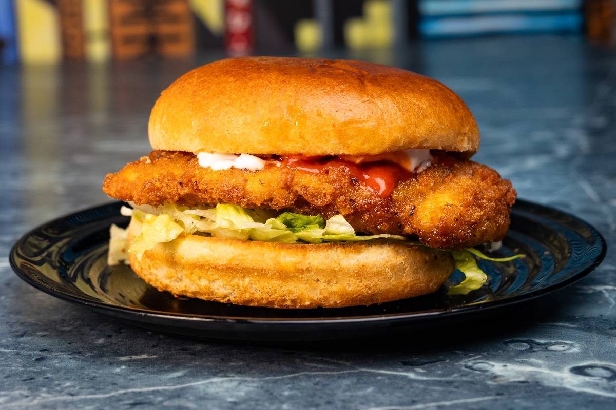 Chicken breast dipped in Burger and Mexican Now buttermilk, coated in panko breadcrumbs and served with lettuce, red onion and mayonnaise.
